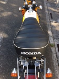 モンキーのシートにはおそらくバネが仕込まれています。シートがフワフワです。モンキーの弱点でもありますがタイヤサイズが小さい事による凸凹道の振動をかなり吸収してくれています。もちろんリアサスもありますが、これと連携していい仕事をしてくれているのだと思っています。モンキーオーナー様もシートのカスタムは悩まれるのではないでしょうか。何故なら純正のシートが非常によく出来ているからです。