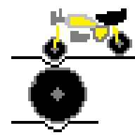 小さいタイヤはギャップ(デコボコ)を拾いやすい!小さい溝や穴にタイヤがすっぽりハマってしまう。下図の通り、同じ溝や穴でも大きいタイヤではあまり車体が下がらない。