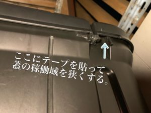ここにスポンジ付きのテープを貼って蓋が横にずれないようにするだけ。↓
