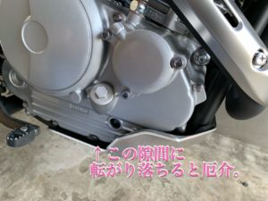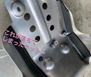ツーリングセローの場合、アンダーカバーがありまして、ここの間にナットが落ちると厄介です。