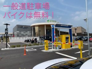 こちらのサービスエリアは一般道から入る事が出来るようになっています。バイクの駐車料金は無料です。