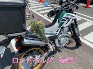 ここで、以前釣りに行く時に便利だろうと取り付けたなんちゃってロッドホルダーが活躍。